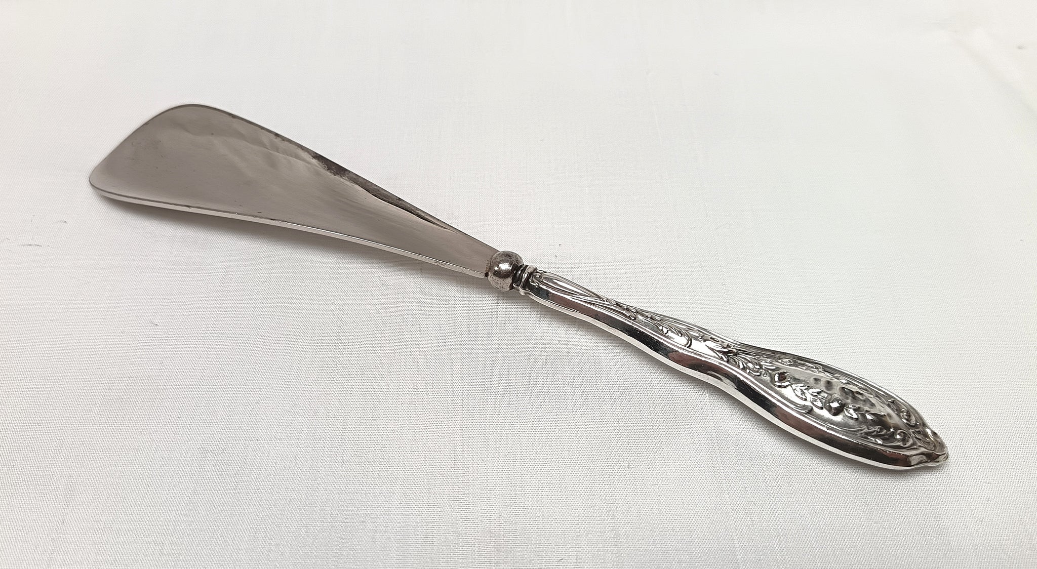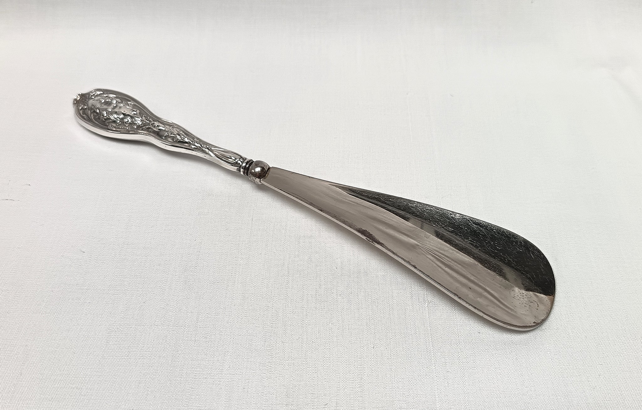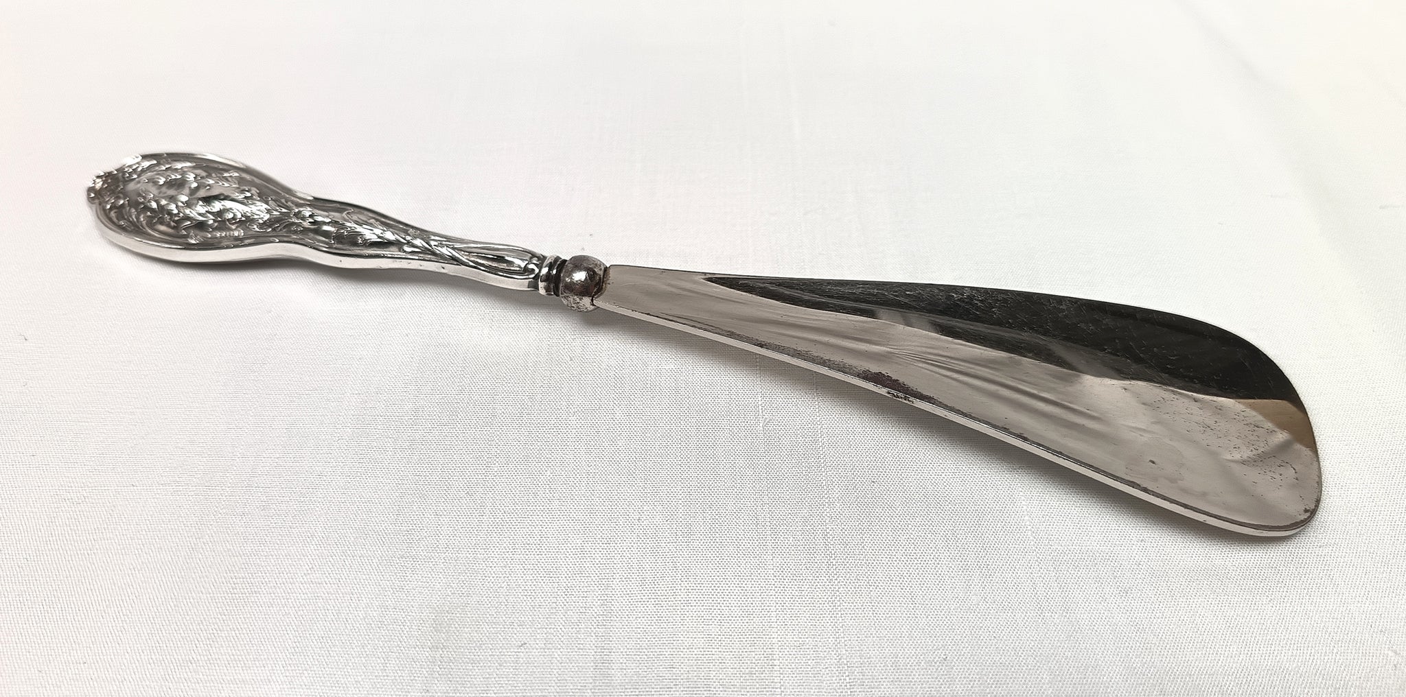 Antique Sterling Silver & Silver Plated Shoehorn – Floral Motif Handle