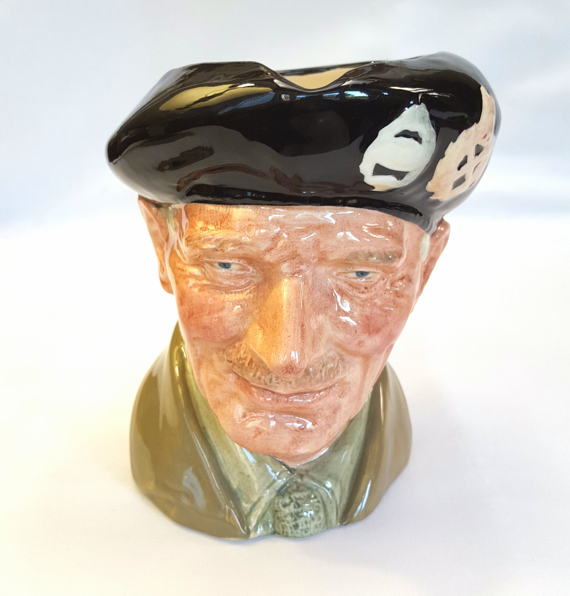 This character jug (D6202) captures Monty in his iconic brown beret and khaki uniform, designed by Harry Fenton and issued between 1946 and 1991, with a minor colourway change in 1954 when the yellow highlighting on the cap badge was removed.
