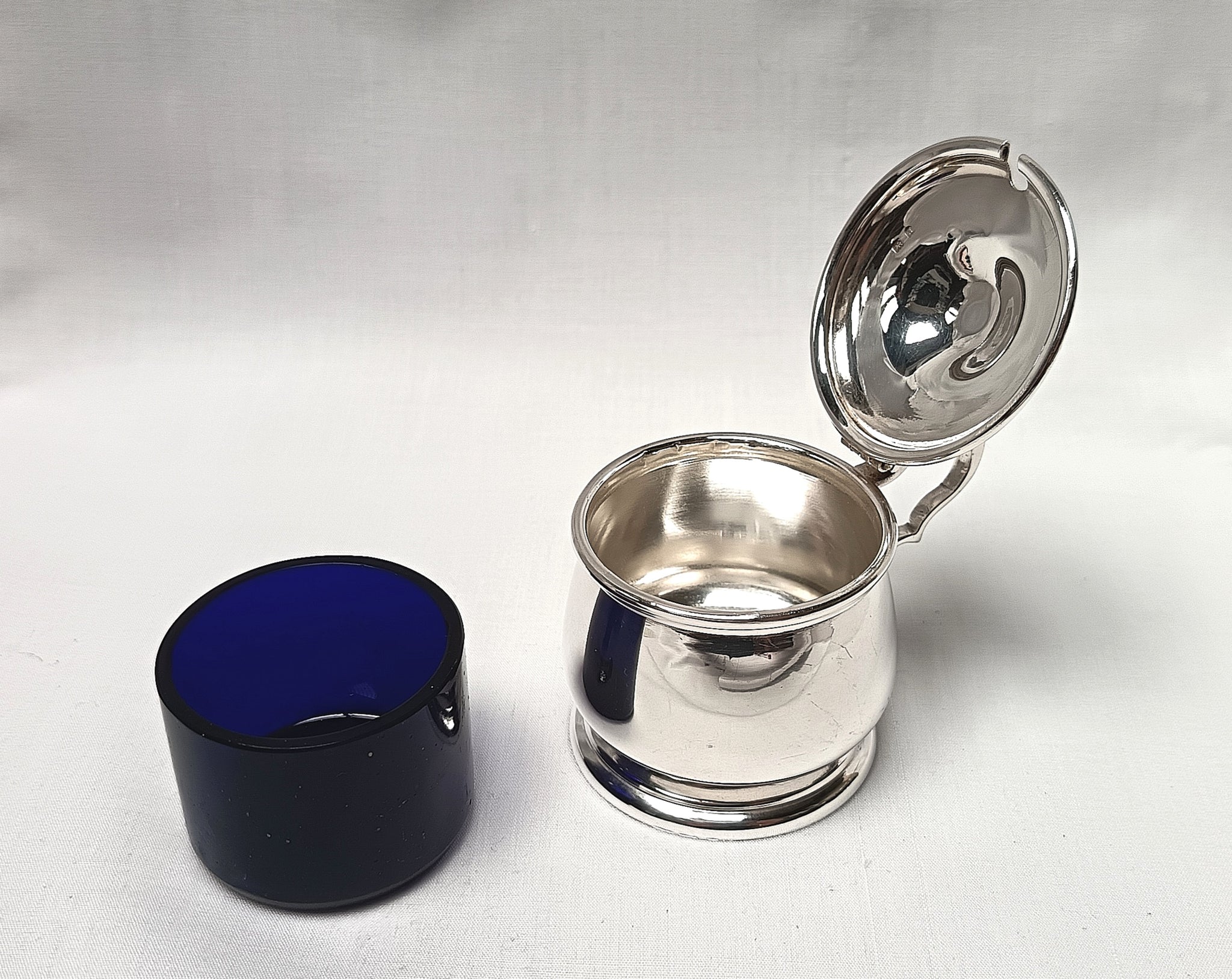 Near-Antique Hallmarked Sterling Silver Lidded Salt Cellar with Original Bristol Blue Glass Liner – G Bryan & Co, Birmingham, 1933