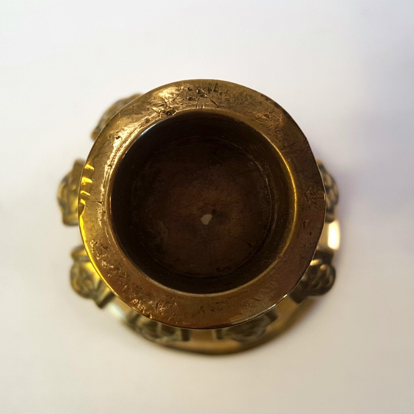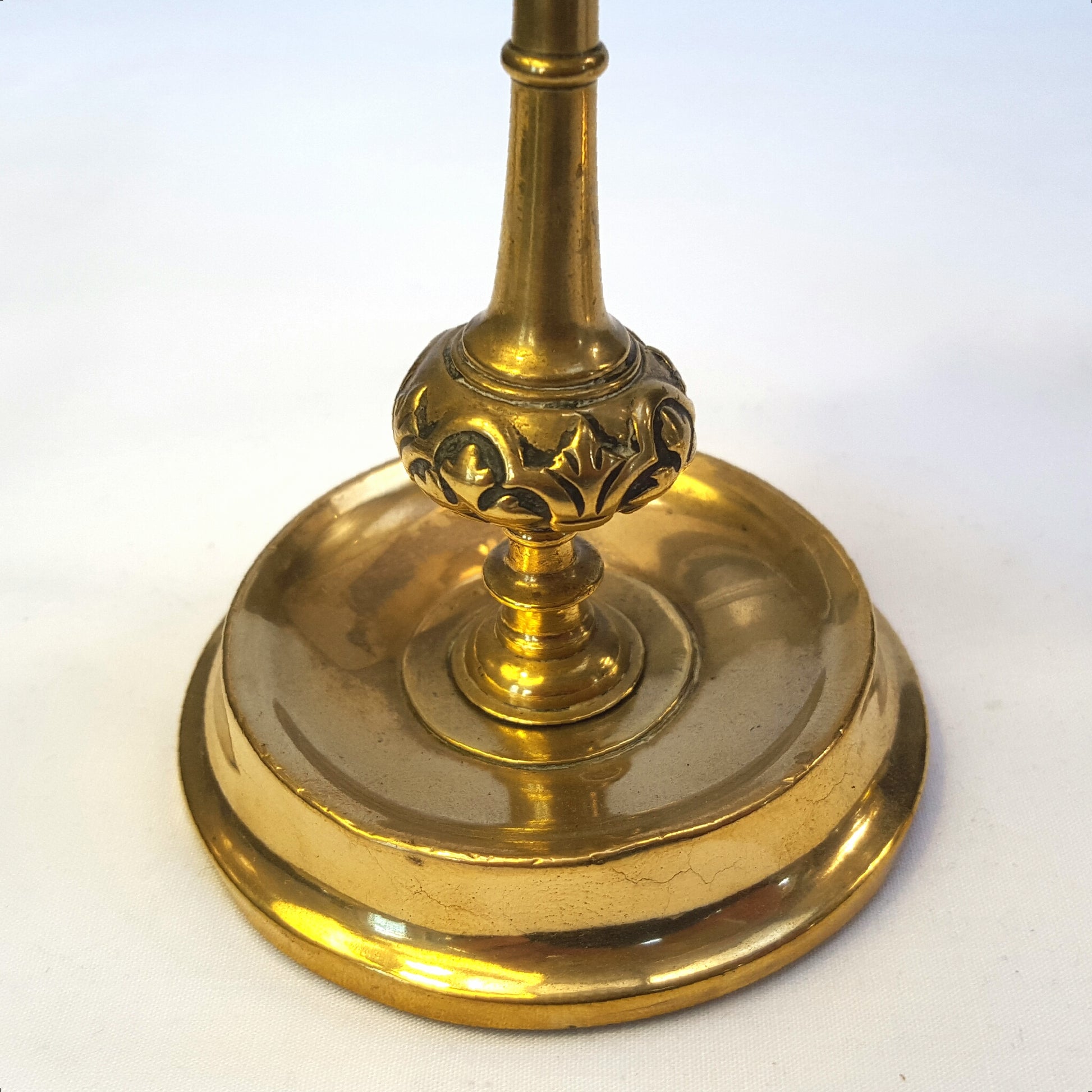 A beautiful and highly decorative pair of antique Victorian candlesticks, crafted in ornate cast brass with intricate detailing that reflects the elegance and craftsmanship of the 19th century.