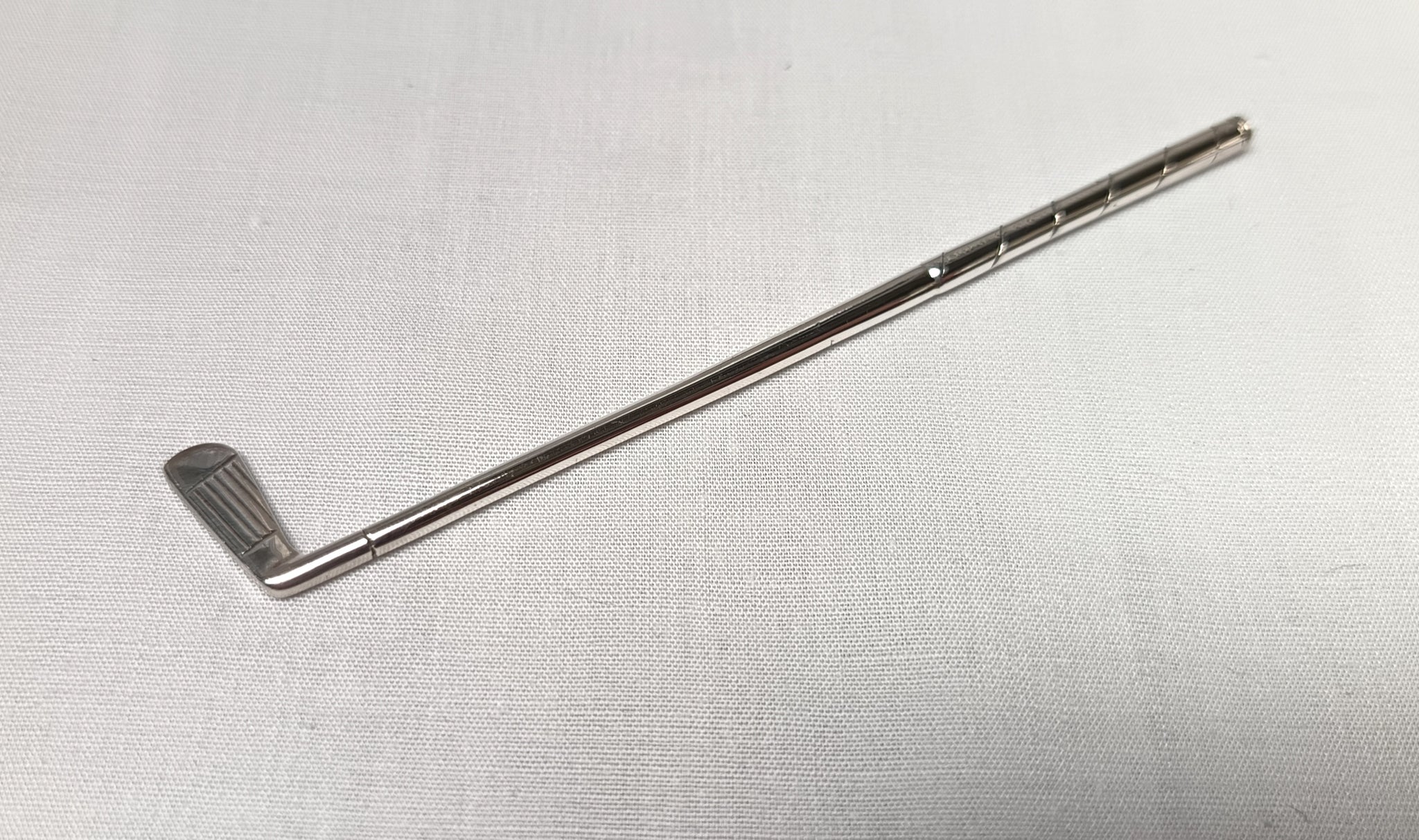 Created in Birmingham in 1968 by the esteemed silversmith John Rose & Co., this charming piece reflects the playful creativity of mid‑20th‑century silver novelty design. Its finely worked form — modeled in the shape of a miniature golf club — makes it a perfect accent for cocktail hour, a conversation‑starting garnish tool, or a thoughtful keepsake for the golf lover in your life.
